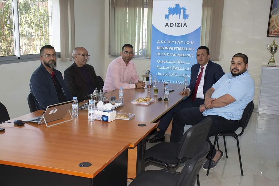 Sous la présidence de M. Abdallah El Moussaoui, l’Association des Investisseurs de la Zone Industrielle d’Aït Melloul (ADIZIA) a organisé, le jeudi 07 mars 2024, une réunion importante en présence de Dr. Hicham El-Kaissouni, Président de la commune d’Aït Melloul, d’Ibrahim Al-Qurashi, Vice-président d’ADIZIA, de Badr Al-Masoudi, Vice-trésorier, de Rashid Al-Soussi, Directeur de l’association, de Mohand Al-Souli, Directeur des Services Communaux, et de Mustafa Al-Bahri, Chef du service de Renouvellement Urbain et de l’Environnement.